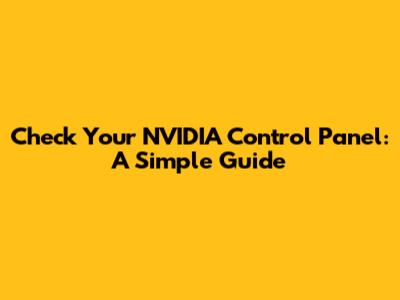Check Your NVIDIA Control Panel: A Simple Guide