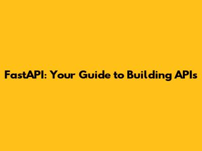 FastAPI: Your Guide To Building APIs