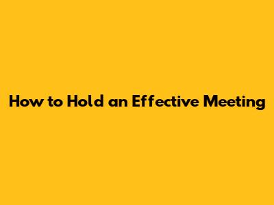 How To Hold An Effective Meeting