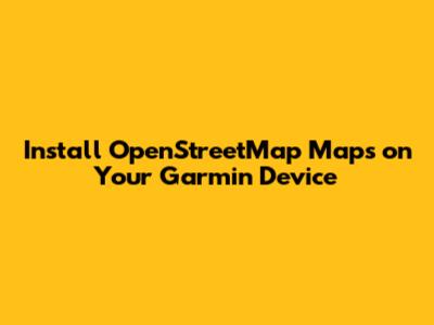 Install OpenStreetMap Maps On Your Garmin Device