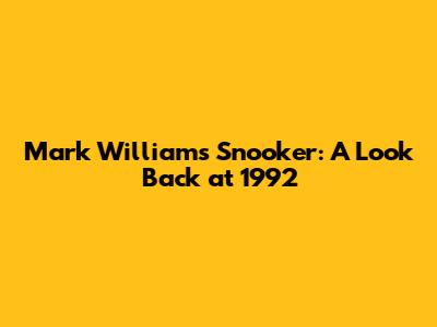 Mark Williams Snooker: A Look Back At 1992