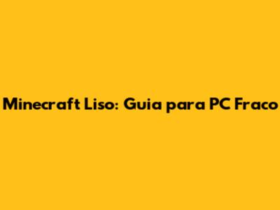 Minecraft Liso: Guia Para PC Fraco