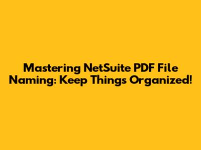 Hey guys! Let's talk about something super important but often overlooked in NetSuite: PDF file naming. Seriously, having a solid naming convention for your PDFs can save you a ton of headaches down the line. Imagine trying to find that crucial invoice from last quarter, or a specific sales order confirmation, and all you have are files like "Invoice_12345.pdf" or "SalesOrder_Final_v2.pdf". It's chaos, right? In this article, we're going to dive deep into why NetSuite PDF file naming matters, explore best practices, and give you some killer tips to make your document management a breeze. We'll cover how to set up a system that's not just functional but also scalable, ensuring that anyone on your team can easily locate the documents they need, when they need them. Think of it as giving your digital filing cabinet a serious upgrade. We'll break down the common pitfalls of poor naming conventions and highlight the significant benefits of adopting a strategic approach. By the end, you'll be well-equipped to implement or refine your PDF naming strategy within NetSuite, leading to increased efficiency and reduced frustration for everyone involved. We'll explore different scenarios, from customer communications to internal reporting, and how a consistent naming structure can elevate your workflow. Get ready to transform your document handling from a chore into a streamlined process!