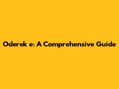Oderek E: A Comprehensive Guide
