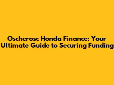 Oscherosc Honda Finance: Your Guide To Funding