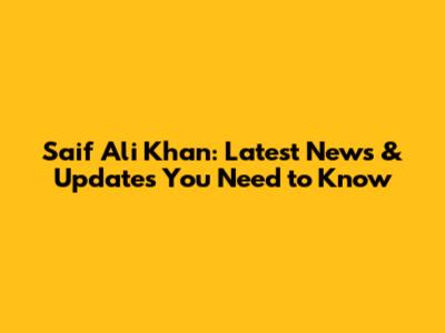 Saif Ali Khan: Latest News & Updates You Need To Know