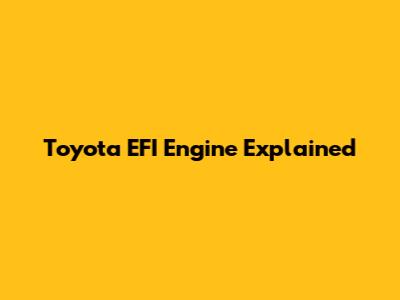 Toyota EFI Engine Explained