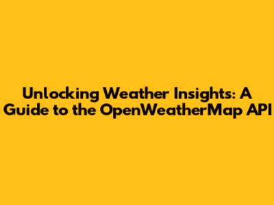 Unlocking Weather Insights: A Guide To The OpenWeatherMap API